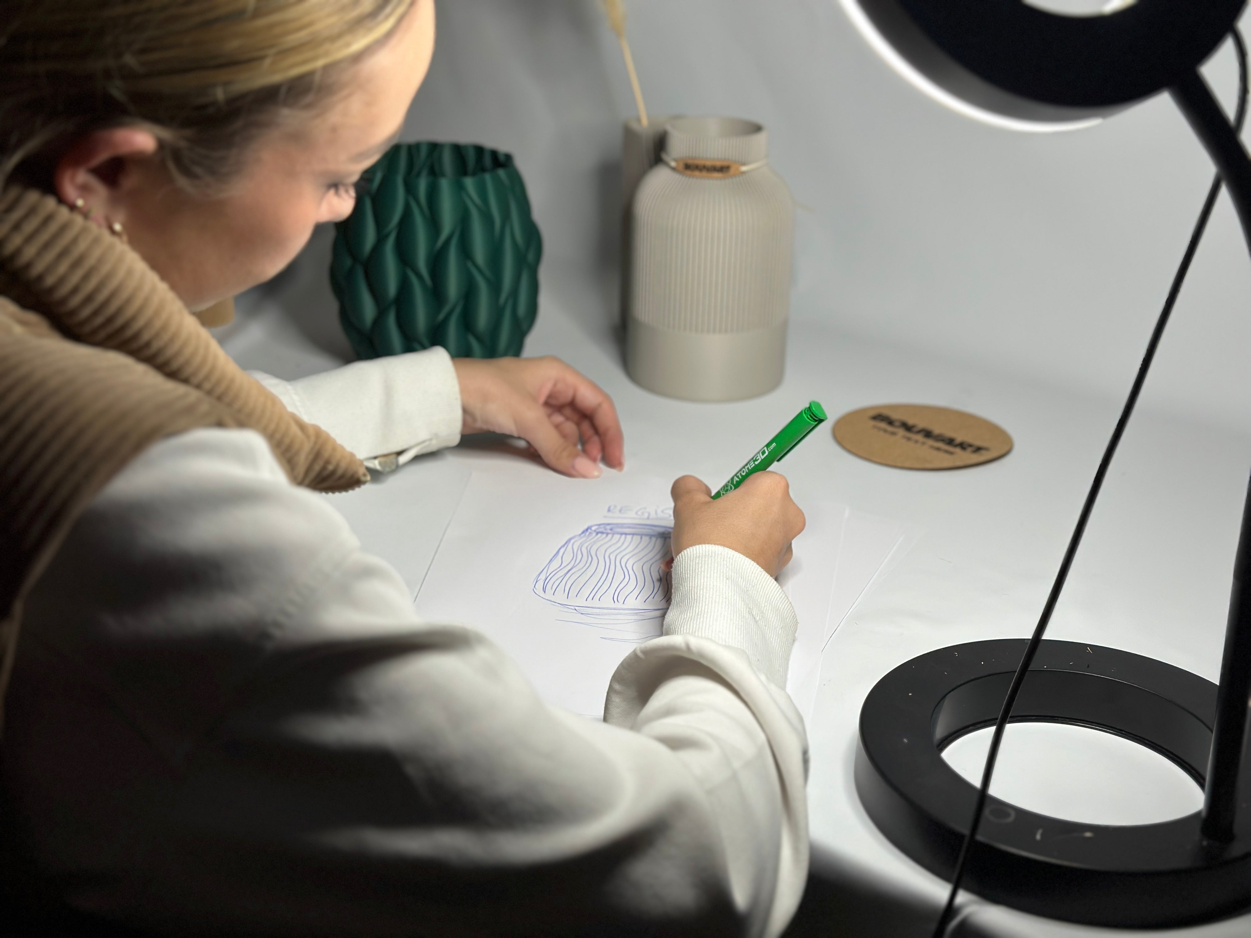 BOUVART Studio is a French brand specializing in 3D-printed designer décor. We create vases, planters, candle holders, and illuminated signage from recycled PLA, combining ecology, craftsmanship, and innovation.